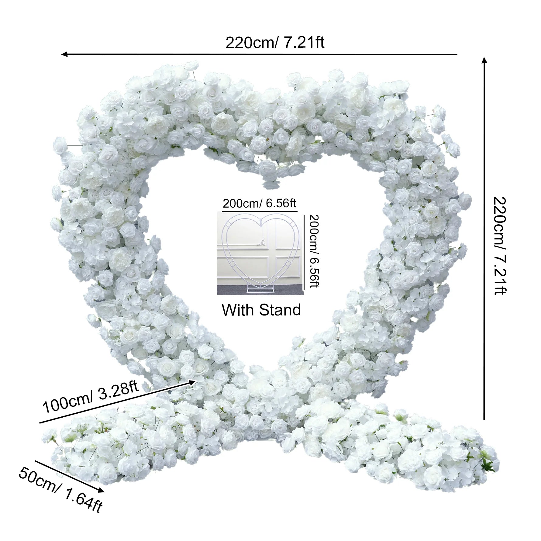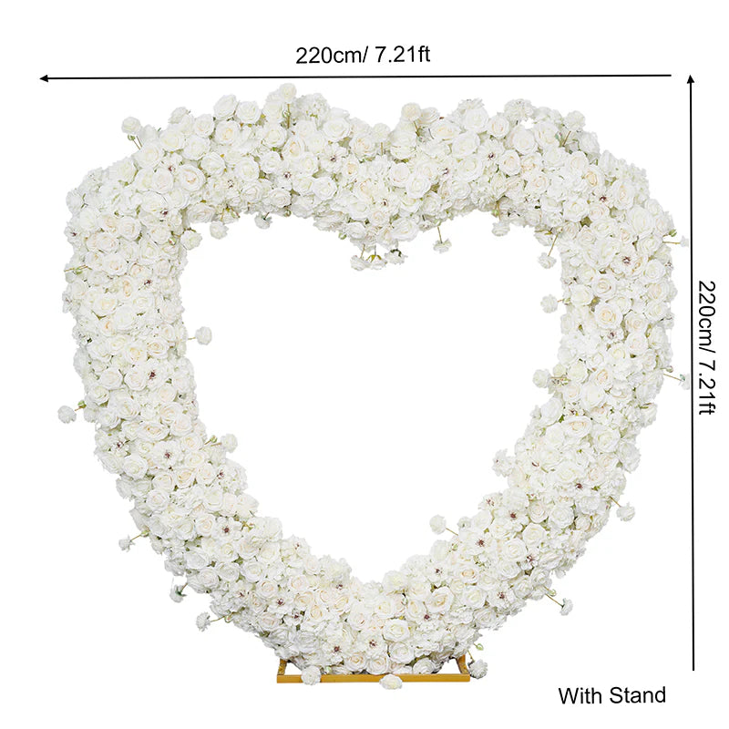 • WOW Event Rental offers a heart-shaped flower stand wedding backdrop with luxury White floral decor in Atlanta’s major cities.